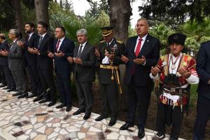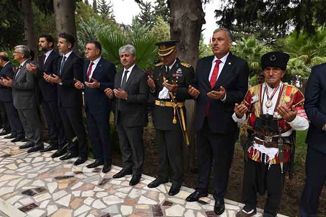 Dünkü ikinci tören, Şehitlik’te gerçekleşti. Burada da Şehit mezarlarına gül serpiştirildi, saygı duruşunda bulunuldu, saygı ateşi gerçekleştirildi. -Cemil Yıldız-