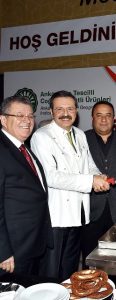 ‘Antakya Simidi’ başlığında süren tartışmaların işaret ettiği son örnek Ankara’dan geldi! Ankara Ticaret Odası (ATO) tarafından düzenlenen 5. Ticaret Ataşeleri Buluşması’nda bir araya gelen önemli isimler, Ankara’nın yöresel tatları ile ağırlanırken; coğrafi işaret tescili almış “Ankara Simidi, Ankara tava ve Ankara Döneri” ikram edilenler arasında yer aldı. Konuklara sunulan Ankara dönerini ise (dönemin Hatay Valisi) Ankara Valisi Ercan Topaca, TOBB Başkanı M. Rifat Hisarcıklıoğlu ve ATO Yönetim Kurulu Başkanı Gürsel Baran kesti. Kestiği döneri basın mensuplarına ikram eden Hisarcıklıoğlu, söz konusu ürünlerin Avrupa’da da tescil alması için başvurması halinde ATO’ya destek sözü verdi.