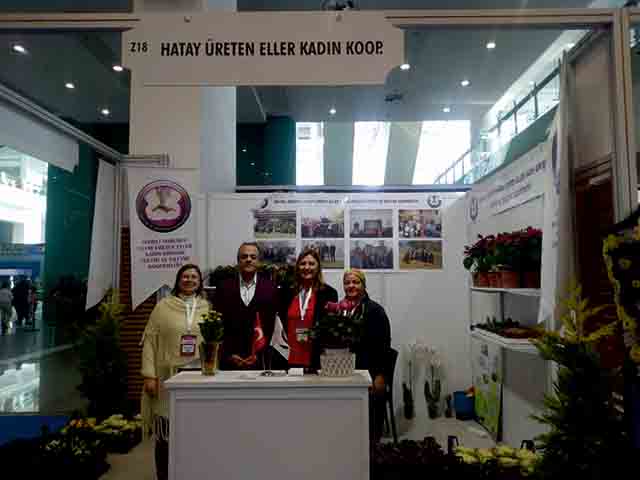 Ankara’da dün, Cumhurbaşkanı Yardımcısı Fuat Oktay ve Ticaret Bakanı Ruhsar Pekcan’ın da katılımı ile Türkiye Kooperatif Fuarı oluşturuldu. Fuar’da ilimiz, 3 kadın kooperatifi ile temsil edildi. Cumhurbaşkanı Yardımcısı Fuat Oktay tarafından açılışı gerçekleştirilen Fuar’a, ilimizden; Ticaret İl Müdürü Halit İmrek, Hatay Esnaf ve Kefalet Kooperatifi Başkanı Sabit Teksöz, Başkan Yardımcısı Vehip Sultanoğlu ile kadın kooperatif temsilcileri Nesrin Deli, Rahşan Atahan, Aycan Gülbas, Serpil Sultanoğlu, Nevin Yüce, Nidal Özdemir, Nigar Sağlam, Emine Mine Şibiroğlu katıldı. -Mehmet Durmaz-