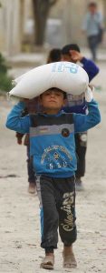 Bölgedeki kalabalığa yönelik devam eden yardım çalışmalarını sürdüren uluslararası bir yardım