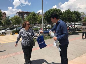 İYİ Parti Antakya ilçesi ve il teşkilatından bazı yöneticiler ve gençler, geride kalan Pazar gününde Anneler Günü’nü kutlama amaçlı farklı bir organizasyona imza attılar. İYİ Partili’ler, kentin önemli alışveriş merkezlerinden Palladium AVM önünde karargah kurdu ve gelip geçen tüm bayanlara çiçek takdim etti, Anneler Günü’nü kutladı. İYİ Parti’li gençlerin jesti memnun ederken, “güzel jest” şeklinde yorumlandı. -Cemil Yıldız-