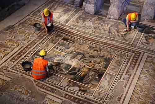 vahşi doğa tasvirli mozaiğe kadar birçok ünik eser bulunduğu yerde sergilenecek.