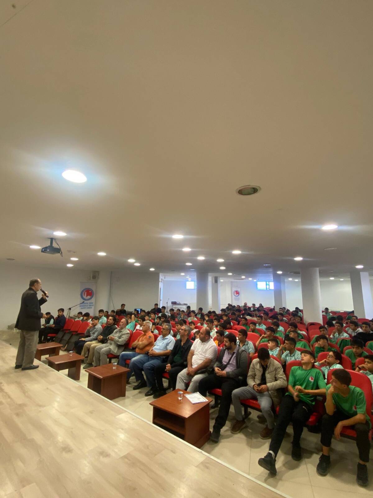 Programa Hatay’ın tanınmış kanaat önderlerinden İlahiyatçı-Vaiz Mecit Ercin, Okul Müdürü Muhammet Karaduran, okulun kurucu müdürü M. Hanifi Tuncer, okul idarecileri, öğretmenler ve öğrenciler katıldı.
