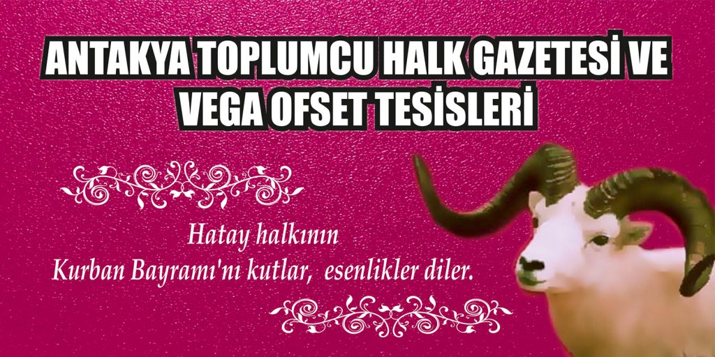 ANTAKYA Toplumcu Halk Gazetesi ve VEGA OFSET Tesisleri: Hatay halkının Kurban Bayramı’nı kutlar, esenlikler diler. Giriş: 09-08-2019 18:43Güncelleme: 09-08-2019 18:44 167 GündemManşet Hatay halkının Kurban Bayramı’nı kutlar, esenlikler diler.
