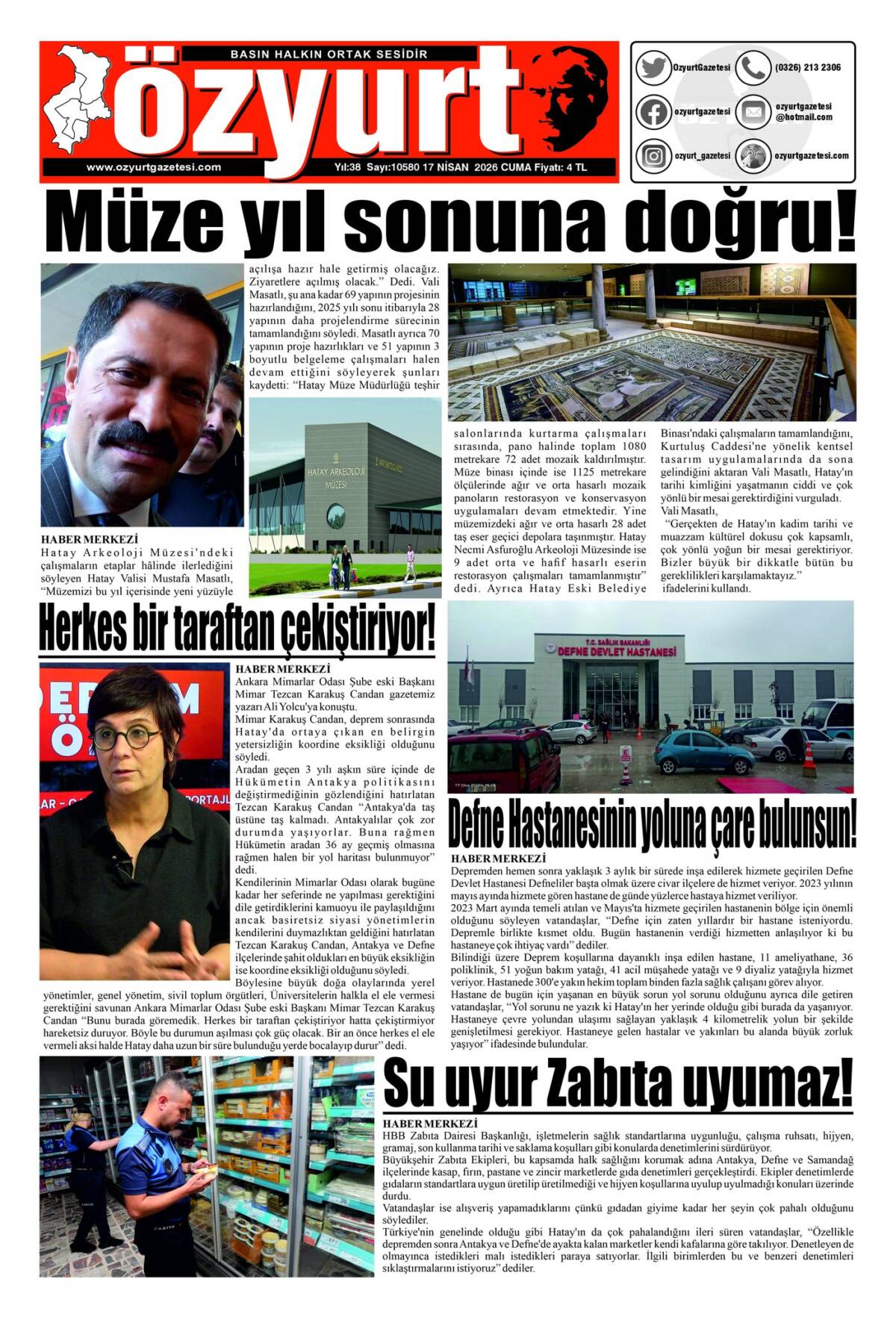 37 yıllık yayın hayatı boyunca sayısız habere imza atan ÖZYURT Gazetesi’nin kapanışı, yerel basın adına önemli bir kayıp olarak değerlendiriliyor. Gazetenin arşivinde yer alan haberler, Antakya’nın yakın tarihine tanıklık eden önemli bir kaynak olarak hafızalardaki yerini koruyacak.