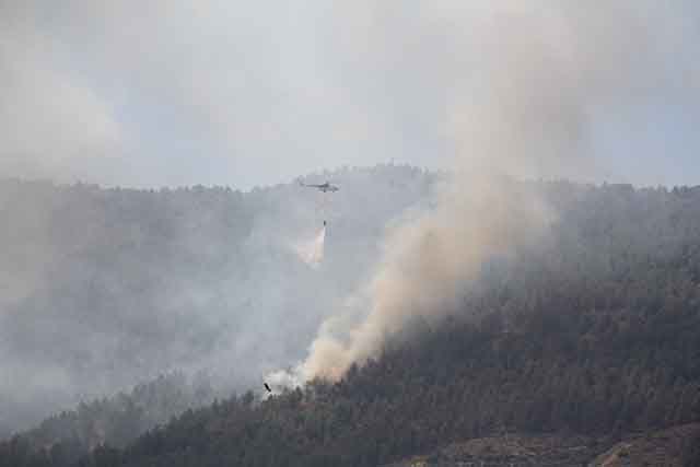 İhbar üzerine bölgeye, 4 helikopter, yangın söndürme uçağı, 20 arazöz, 2 dozer, 10 su tankı ve çok sayıda yer ekibi sevk edildi. Yangın çıkan 4 farklı noktanın birbirlerine yakın oldukları gözlendi. Havadan ve karadan müdahale edilen yangın, 4,5 saatlik çalışma sonucu kontrol altına alındı.