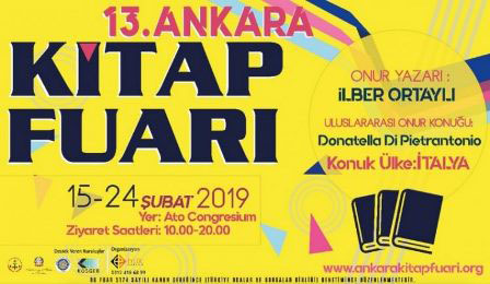 13. Ankara Kitap Fuarı okurlarla buluştu. 24 Şubat’a kadar ATO Congresium Salonu’nda devam edecek olan fuarda bu yıl da birçok yayınevi yer aldı. Fuarın bu seneki Onur Konuğu Tarihçi-Yazar İlber Ortaylı olurken, konuk ülke ise İtalya seçildi. 10 gün sürecek fuarda birçok söyleşi, konferans ve imza günü gerçekleştirilecek.