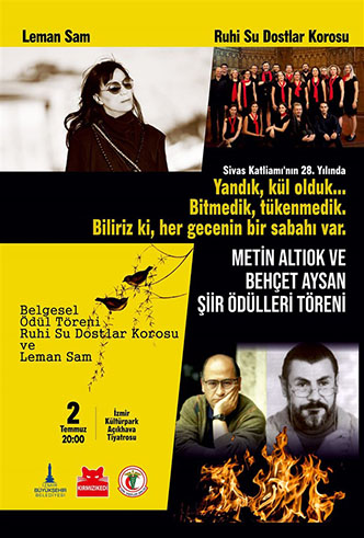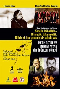 Sivas Katliamı’nın 28’inci yılında Behçet Aysan ve Metin Altıok Şiir Ödülleri, 2 Temmuz Cuma günü saat 20:00’de İzmir Kültürpark Açıkhava Tiyatrosu’nda sahiplerini bulacak.