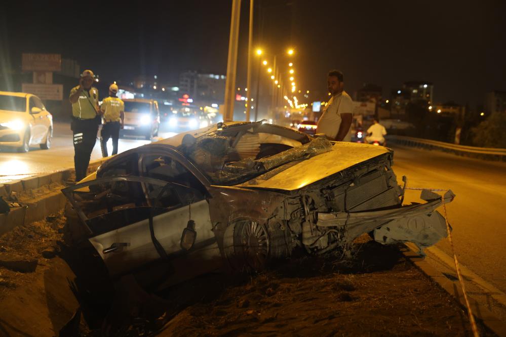 Hatay’ın Antakya ilçesinde kontrolden çıkan otomobilin aydınlatma direğine çarpması sonucu