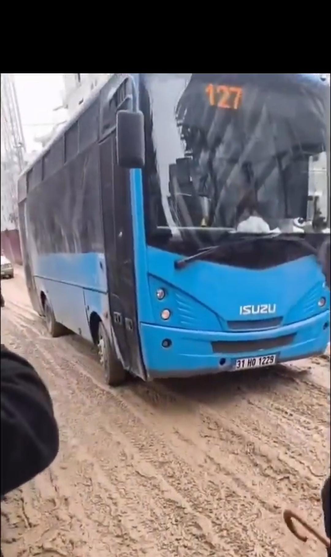 Antakya’da toplu taşıma seferi yapan 127 numaralı otobüs, 75. Yıl Bulvarı civarında yolun çamurlu olması nedeniyle ilerleyemeyerek çamura saplandı. Olay nedeniyle otobüs uzun süre hareket edemezken, yolcular mağduriyet yaşadı.