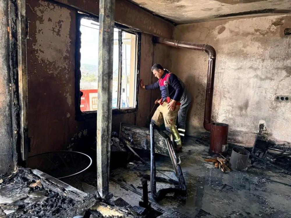Yangında evde maddi hasar meydana gelirken, yangının çıkış nedeninin belirlenmesi için inceleme başlatıldı.