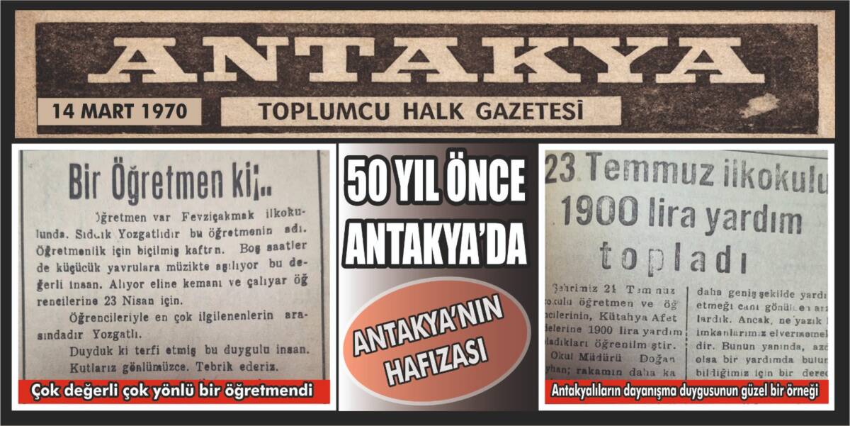 Antakya’nın geçmişine ışık tutan 14 Mart 1970 tarihli *Antakya Toplumcu Halk Gazetesi*, kentin eğitim ve dayanışma kültürünü yansıtan dikkat çekici haberleriyle bir kez daha gündeme geldi.
