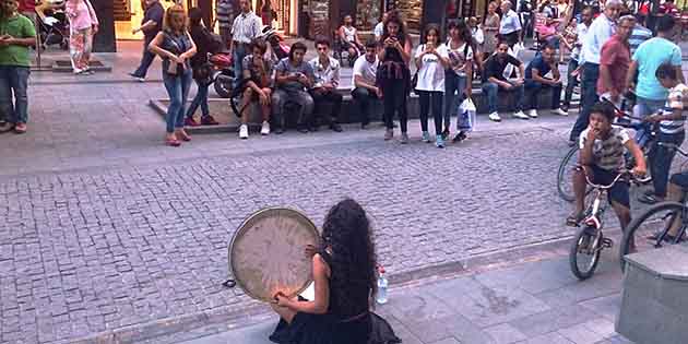 Kimi tempo tutuyor, kimi söylenen şarkının ritminde kelimeleri mırıldanmaya çalışıyor… Antakya’nın trafiğe kapanan Saray Caddesi’ni mesken tutan sokak şarkıcıları ve çalgıcıları, büyükşehirlerin özgür notalarında yükselen atmosferi de beraberinde getiriyor. Bu durumdan vatandaş da memnun, bu nedenle oluşan kalabalıkların mola almasından keyiflenen esnaf da. -Tamer Yazar-