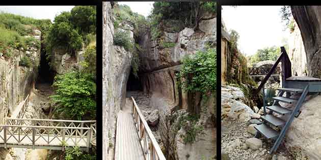 Kanalın 130 metresi, 7 metre yüksekliğinde, 6 metre genişliğinde tavanı kapalı tam bir tünel şeklindedir. Bazı bölümlerde, dağ ortadan ikiye kesilmiş gibidir ve gökyüzüne uzanan duvarlarından içeri giren güneş, nefes kesici ışıklarıyla göz kamaştırmaktadır. Kanalın üzerinde, yine Roma devrinde yapılmış, karşıdan karşıya geçişi sağlayan bir de