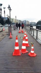 N.Ö. > Hep söylenen bir şey var ve o söylenene ben de katılıyorum. Kullandıkları malzeme gerçekten de güzel. O anlamda malzemenin ucuzuna kaçmıyorlar! Ama işçilik konusunda bir türlü sınıfı geçemiyoruz. İşimizi temiz ve dikkatli yapmıyoruz. Bu dubalardan önce kaç gün bu vidalar açıkta bırakıldı, biliyor musunuz? Günlerce! Gündüz yürürken bile fark edilemiyorlar çoğu zaman. Bir de gece geçin bu yoldan! Göremezsiniz bile! İnsan merak ediyor… Biri düşse ve ciddi anlamda yaralansa, ne diyecekler? “Önüne iyi baksaydı” mı? Sanırım evet!