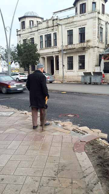 J.F. > Babam yaşlı. Eskisi kadar rahat yürüyemiyor. Ama eskiden kendi başına giderken ki rahatlığım yok. Çünkü yolu trafiğe açanlar, bu cadde boyunca oturan bunca insana yokmuş gibi davranıyor adeta. Bir kere kaldırımlar, cadde boyunca berbat durumda. İniş, çıkış kısımları hep parçalanmış. Yaşlı insanlarımız var, çocuklarımız, engelli bireylerimiz… Peki, ne zaman bitermiş, biliyor musunuz?