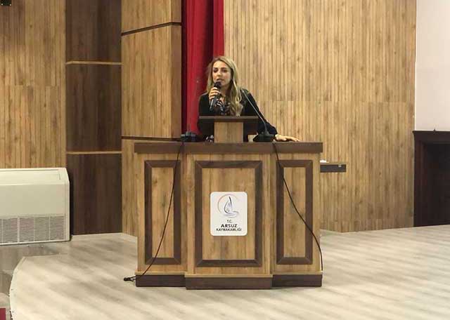 Deminer kapsamında, Hatay Mustafa Kemal Üniversitesi (MKÜ) Öğretim Görevlisi Fırat Ata ile İskenderun Palmiye Hastanesi Uzman Psikolog Sevgi Kirmit, “Yeni Medya ve Sosyal Medya Doğru Kullanımı – Zararları” konulu sunumlar yaptı.
