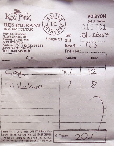 Henüz sezon bile açılmamışken, Kıyıpark’a 15-20 dakikalık müşteri olan 4 kişi, içtikleri 3 çay ve 1 kahve bedeli olarak 20 TL ödemek zorunda bırakıldı.