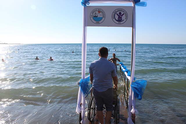 Hatay’ın ilk ve tek engelli deniz rampası Arsuz’da açıldı ve Arsuz plajında engeller ortadan kalktı