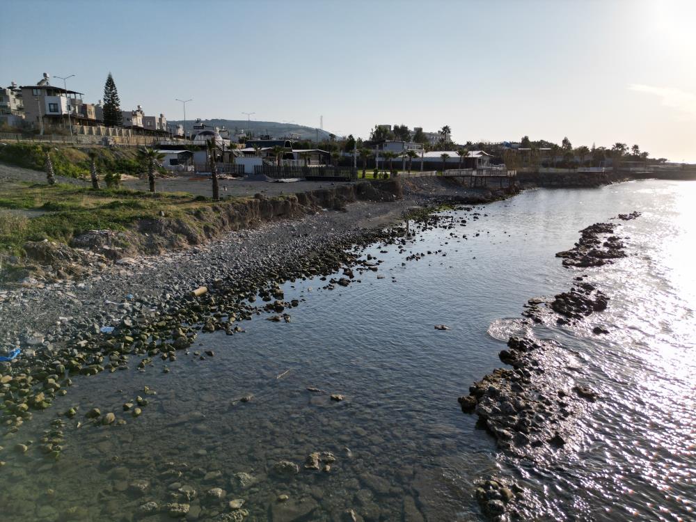 Hatay’ın Arsuz ilçesinde yer yer 20 metreyi bulan deniz çekilmesinin ardından deniz seviyesi normale dönmeye başladı. Geçtiğimiz günlerde etkili olan fırtına sonrası deniz seviyesindeki yükselme, dronla havadan görüntülendi.