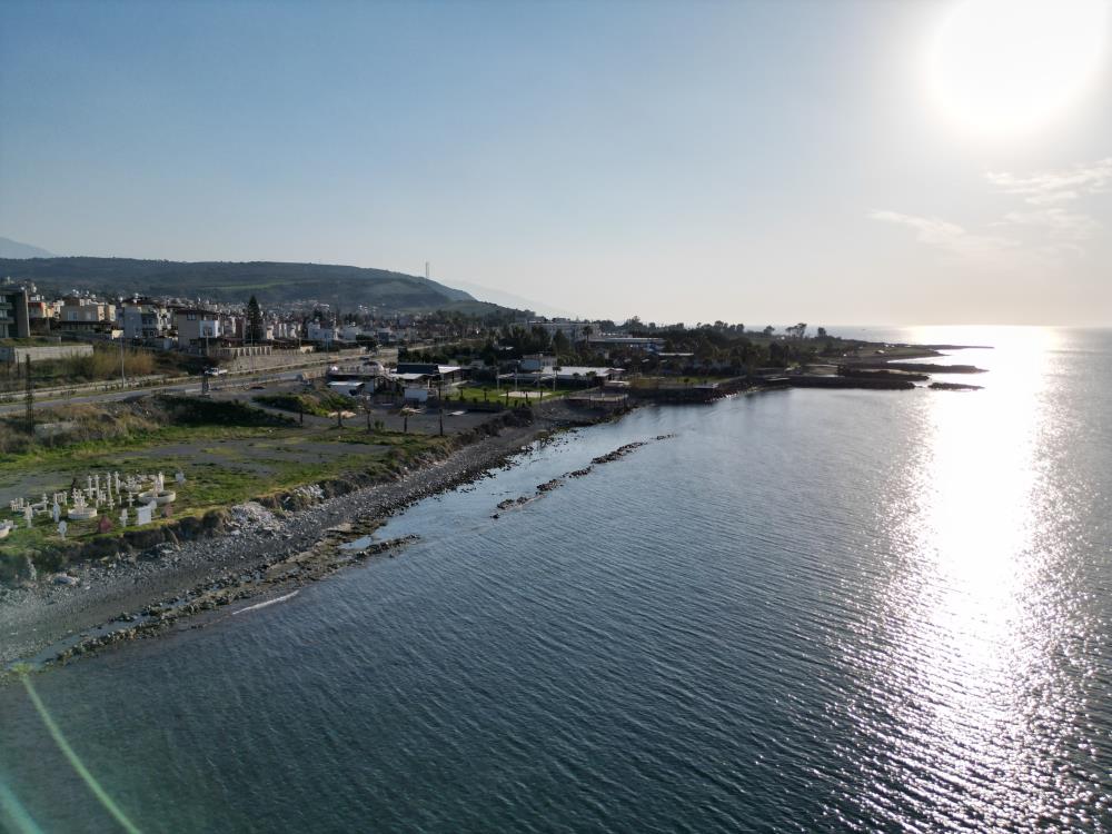 Hatay’ın Arsuz ilçesinde yer yer 20 metreyi bulan deniz çekilmesinin ardından deniz seviyesi normale dönmeye başladı. Geçtiğimiz günlerde etkili olan fırtına sonrası deniz seviyesindeki yükselme, dronla havadan görüntülendi.