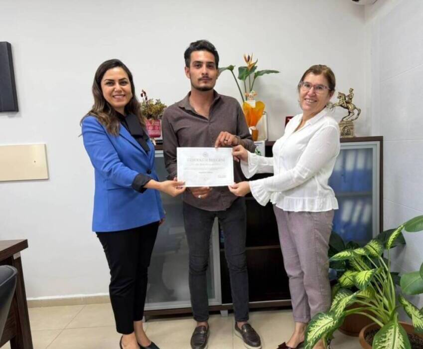 Teşekkür belgesini, Arsuz İlçe Sağlık Müdürü Uzm. Dr. Buket Baş Karaca ve Personel Şefi Kıymet Neni takdim etti.