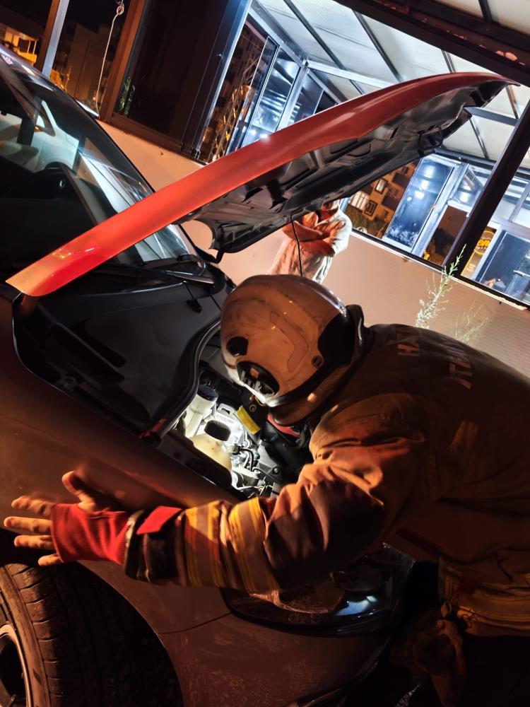 Hatay’ın Arsuz ilçesinde soğuk havadan korunmak isteyen bir yavru kedi, park halindeki bir aracın motoruna girerek itfaiye ekiplerini harekete geçirdi.