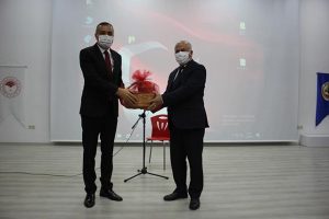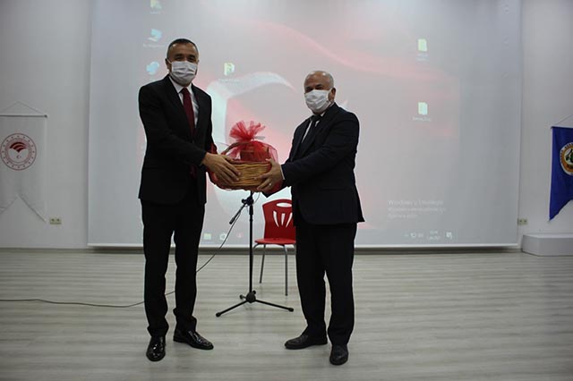 Programda, ev sahipliğinden ve seminerin bir bölümünde konuşmacı olduğundan dolayı, Kaymakam Sarı’ya, Bölge Müdürü Mustafa Koç ve Bölge Müdür Yardımcısı İlkay Günay tarafından günün anısına hediye takdim edildi.”