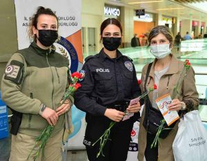 Emniyet Müdürlüğü yöneticileri, 8 Mart Dünya Kadınlar Günü kapsamında, Palladium Alışveriş Merkezi’nde Kadın Polis memurlarının kadınlarımızın Kadınlar Günü’nü kutlayarak karanfil dağıttığını kaydederek, KADES uygulaması ile ilgili broşürlerin de etkinlik kapsamında paylaşıldığını bildirdiler. -Selvi Günay-