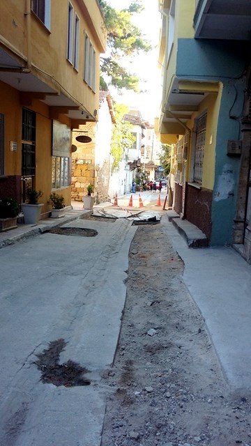 Bugüne dair konuşanların gündeminde, Antakya Belediyesi’nin, tescilli evlerin dar sokaklarına doğru ilerleyen bir yolda başlattığı ‘iyileştirme’ çalışmasının ‘ana malzemesi’ var. Kazılan ve kent kimliğine uygun bir malzeme ile döşeneceği düşünülürken, betonla kaplanan bir yolun hayal kırıklığı var.