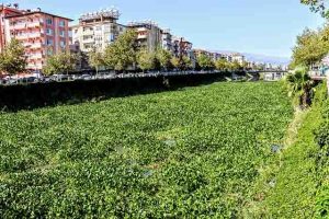 Asi Nehri, yeniden su sümbüllerinin istilasına uğradı. Suriye’den gelen su sümbülleri, birkaç gün içinde Antakya sınırlarına kadar ulaştı ve dün öğle itibariyle de Asi Nehri’nin yüzeyi tamamen su sümbüllerinin istilasına uğradı. Nehrin yüzeyi, tamamen su sümbülleriyle doldu. -Mutlu Yanık-