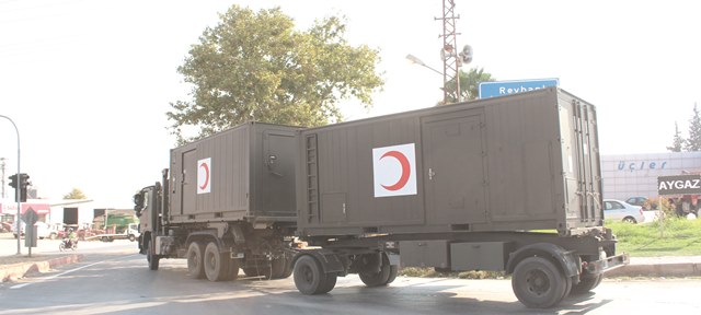 Suriye sınırındaki birliklere takviye amaçlı gönderilen askeri sağlık araçları ve ekipmanlar, Reyhanlı ilçesindeki Cilvegözü Sınır Kapısı’ndan geçti. Farklı birliklerden Hatay’a gönderilen sağlık malzemelerini taşıyan araçlar, iş makineleri ve askeri ilk yardım araçları, Reyhanlı sınır hattı istikametine doğru hareket etti. Güvenlik önlemleri altında sevk edilen 20 araçlık konvoy Cilvegözü Sınırı Kapısı’ndan geçti.