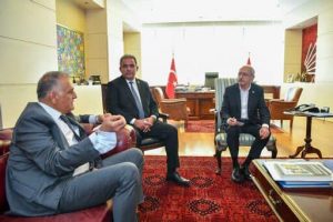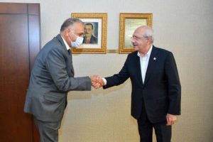 Antakya Ticaret ve Sanayi Odası (ATSO) Başkanı Hikmet Çinçin ile Meclis Başkanı Selahattin Eskiocak ve Başkan Yardımcısı Eşref Özkaya ile İşadamı Necmettin Çalışkan, Yönetim Kurulu üyeleri Serdar Şahutoğlu ile Rufail İğne’den oluşan heyet, Cumhuriyet Halk Partisi Genel Başkanı Kemal Kılıçdaroğlu‘nu makamında ziyaret etti.