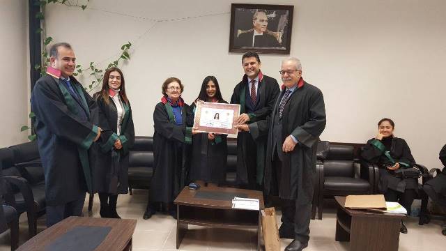 Hatice Kübra Karadeniz’e cübbesini ise Yönetim Kurulu Üyesi Av. Şükran Güzel ve Av. Halil Hazırlar giydirdi. Baro Başkanı Av. Ekrem Dönmez, genç meslektaşını kutladı ve başarılar diledi. -Gökay Gökdemir-