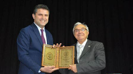 Hatay Barosu Yönetimi adına geçtiğimiz haftaki eğitim seminerine moderatörlük yapan Av. İsmet Sahillioğlu’na Teşekkür Plaketi verildi.