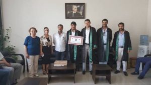 Hatay Barosu, staj süresini tamamlayan Mehmet Halil Talipler’e ruhsatını verdi. Staj dönemini başarıyla tamamlayan, Uluslararası Kıbrıs Üniversitesi Hukuk Fakültesi mezunu Mehmet Halil Talipler, Reyhanlı Adliyesi’nde düzenlenen yemin töreninde ruhsatını Baro Başkanı Av. Ekrem Dönmez’in elinden aldı. Törende, Yönetim Kurulu Üyesi Av. Şükran Güzel de hazır bulundu. Mehmet Halil Talipler’e cübbesini ise Av. Mehmet Fatih Turan giydirdi. Baro Başkanı Av. Ekrem Dönmez, genç meslektaşını kutladı ve başarı diledi. -Selvi Günay-