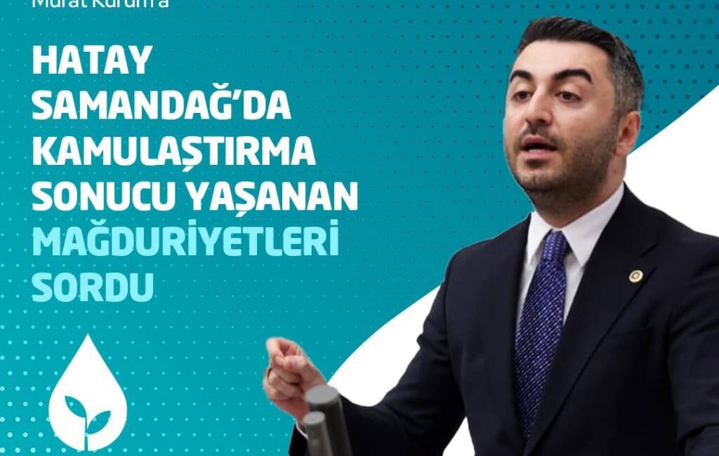 Deva Partisi Tekirdağ Milletvekili Cem Avşar, Çevre, Şehircilik ve İklim Değişikliği Bakanı Murat Kurum’a, acele kamulaştırma işlemleri ve Hatay Samandağ’daki özel duruma ilişkin önemli sorular yöneltti. Avşar, Türkiye genelinde ve özellikle Hatay’da yapılan kamulaştırmaların toplumsal, çevresel ve hukuki boyutlarını sorguladı.