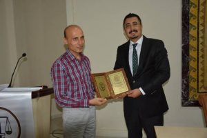 Hatay Barosu, Türkiye Barolar Birliği (TBB) Sosyal Yardımlaşma Dayanışma Fonu (SYDF) Müdürü’nün de katılımı ile Antakya’da avukatlara yönelik bir seminer gerçekleştirdi. Ankara’dan gelen TBB SYDF Müdürü Abdurrahman Karip’in katılımıyla, “TBB ile İlişkiler, Sosyal Yardımlaşma ve Dayanışma Fonu” konulu seminer 16 Eylül Cumartesi saat 10.00′ da Antakya Adliyesi konferans salonunda gerçekleştirildi. Seminerin açılış konuşmasını Staj Kurulu Başkanı Av. Şekip Beyaztunç yaptı. Seminer kapsamında Abdurrahman Karip katılımcılara bilgiler verirken, sunumu ardından, TBB SYDF Müdürü Abdurrahman Karip’e Hatay Barosu Staj Kurulu Başkanı Av.Şekip Beyaztunç tarafından plaket takdim edildi. -Cemil Yıldız-