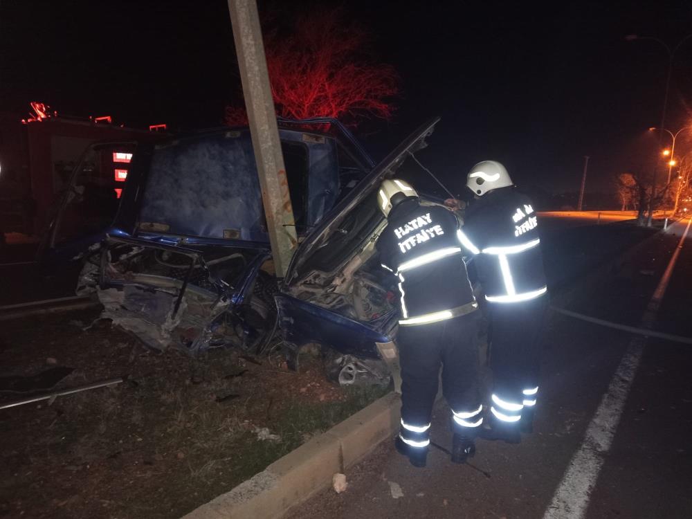 Kaza, Reyhanlı’ya bağlı Harran Mahallesi’nde yaşandı. Edinilen bilgilere göre, seyir halindeki 31 ARA 256 plakalı Toyota marka otomobil ile 31 RG 063 plakalı Tofaş marka otomobil henüz bilinmeyen bir nedenle çarpıştı. Çarpışmanın şiddetiyle kontrolden çıkan Tofaş marka araç, yol kenarındaki aydınlatma direğine çarptı. Çarpmanın etkisiyle araç ikiye ayrıldı.