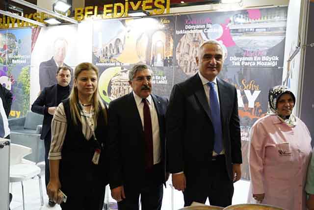 Kültür ve Turizm Bakanı Mehmet Nuri Ersoy ve Hatay Milletvekili Doç.Dr. Hüseyin Yayman, Emitt Fuarı’nda Hatay Standı’nı ziyaret ettiler.