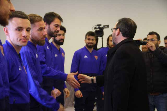 Hatayspor Yöneticileri Aydın Toksöz, Rahmi Vardı ve Mithat Baklacı ile Teknik Direktör İlhan Palut, teknik heyet ve futbolcular tarafından karşılanan Bakan Kasapoğlu ve Vali Rahmi Doğan’a, burada Hatayspor forması ile atkısı hediye edildi, Kulübün durumu ile ilgili bilgi verildi.