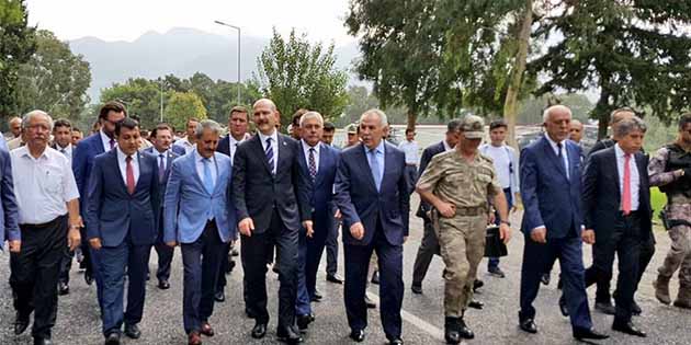 İçişleri Bakanı Süleyman Soylu, dün ani bir şekilde ilimize geldi. Bakan Soylu, Dörtyol’da çeşitli incelemelerde bulundu ve İl Jandarma Komutanlığı’nın verdiği brifinge katıldı. Vali Erdal Ata tarafından il girişinde karşılanan İçişleri Bakanı Süleyman Soylu, daha sonra İlçe Jandarma Komutanlığı’na gitti, İl Jandarma Komutanlığı’nın Amanoslar’da yürütülen terörle mücadelesine ilişkin verilen brifinge katıldı. Bakan Soylu, ardından başka inceleme ve temasları sonrası ilimizden ayrıldı. -Cemil Yıldız-