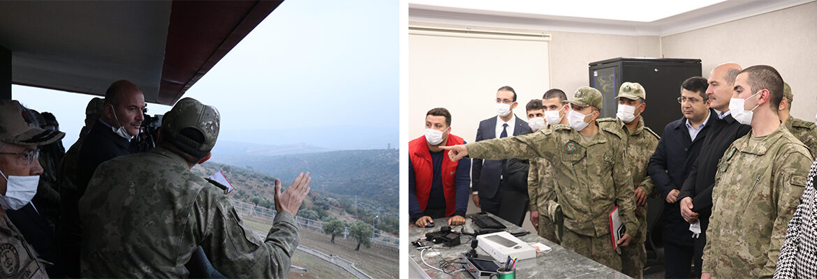 İçişleri Bakanı Süleyman Soylu, geçtiğimiz hafta sonunda İl Güvenlik Toplantısı için Hatay’a geldi. Bakan Soylu toplantı ardından Altınözü ilçesinde Suriye sınırında yer alan Şehit Üstteğmen Mehmet Alim Hudut Karakolu’na gitti. Burada şeref defterini imzalayan Soylu, karakol kalesinden sınır bölgesini inceledi. Güvenlik ve kamera sistemlerini de inceleyen Soylu, 39. Mekanize Tugay Komutanı Tuğgeneral Hakan Tutucu ve 2. Hudut Alay Komutanı Albay Tayfun Çağan’dan bilgi aldı. Soylu’ya ziyaretinde İçişleri Bakan Yardımcıları İsmail Çataklı ve Mehmet Ersoy, Jandarma Genel Komutanı Orgeneral Arif Çetin, Hatay Valisi Rahmi Doğan, İller İdaresi Genel Müdürü Hüseyin Kürşat Kırbıyık ve AK Parti Hatay Milletvekili Sabahat Özgürsoy Çelik de eşlik etti. -Mehmet ÖZGÜN-