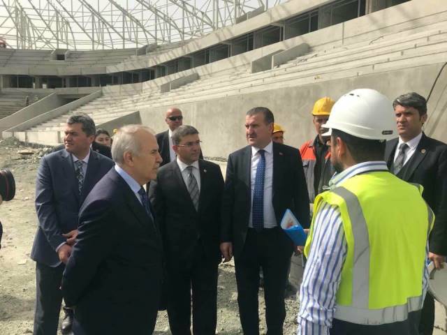 Gençlik ve Spor Bakanı Osman Aşkın Bak’ın yapımı süren Antakya Atatürk Stadı İncelemelerine Hatay Valisi Erdal Ata ile Milletvekili Adem Yeşildal da eşlik etti. -Cemil Yıldız-