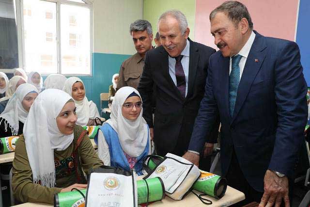 Tamamı Suriyeli annesiz ya da babasız çocukların okuduğu okula giden Bakan Eroğlu’nu, Suriyeli yetimler, ellerinde Türk Bayraklarıyla karşılamada bulundu. Suriyeli yetim çocukların Bakan Eroğlu’na diğer sürprizi ise, “Orada bir köy var uzakta, o köy bizim köyümüzdür” şarkısıyla karşılama yapmaları oldu. Suriyeli yetim çocukların bayraklı, şarkılı ve çiçekli karşılaması ile karılaşan ve oldukça duygulanan Bakan Eroğlu, Vali Erdal Ata ve beraberindeki heyet ile sınıfları gezerek çocuklara hediyeler dağıttı. -Cemil Yıldız-