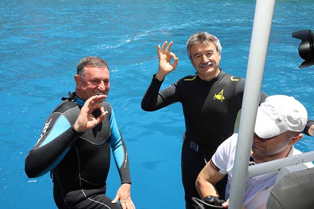 Devlet eski Bakanı Kürşat Tüzmen’in, geçtiğimiz hafta içinde geldiği ilimizde kaldığı süre içinde, çeşitli resmi- özel temas ve incelemeleri yanı sıra, Global TV’de yayınlanacak bir dizi için de çekimlerde bulunduğu bildirildi. Eski Bakan Tüzmen’e, çekimlerde, Hatay Büyükşehir Belediye Başkanı Lütfü Savaş da eşlik etti. Başkan Savaş ve Bakan Tüzmen, Yayladağı ile Samandağ ilçelerine gitti, her iki ilçenin deniz kenarındaki koylarında su altına girerek çekim gerçekleştirdi.