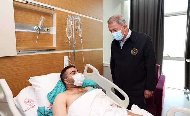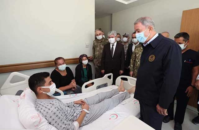 Vali Rahmi Doğan tarafından karşılanan Milli Savunma Bakanı Hulusi Akar ile Genelkurmay Başkanı Org. Yaşar Güler ve Kara Kuvvetleri Komutanı Org. Musa Aysever, Vali Rahmi Doğan eşliğinde hastanede yaralıları ziyaret ederek geçmiş olsun dileğinde bulundu, isteklerini sordu, sohbet etti. Eğitim ve Araştırma Hastanesi Başhekimi Prof. Dr. Yunus Doğramacı; Bakan, Genelkurmay Başkanı, Kara Kuvvetleri Komutanı ile Vali Rahmi Doğan’a, yaralı askerlerle ilgili bilgi verdi.