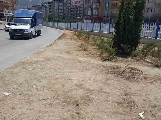 Defne ilçesinin vitrini olmaya aday Uğur Mumcu Bulvarı çevresi; toprak, yollar çukurlu, çimler kurumuş halde. Oluşan görüntü hoş değil.