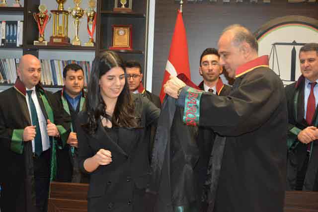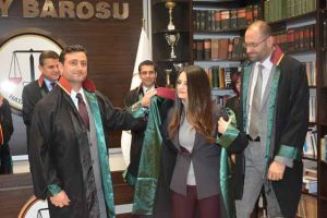 Erkan Çiçek’e cübbesini Baro Başkanı Av. Ekrem Dönmez, Yahya Emin Birecik’e cübbesini Av. Ahmet Atıç, Enes Kahraman’a cübbesini Av. Hayrettin Neşeli ve Av. M. Alper Neşeli, Yudum Çiçek’e cübbesini Av. Ali Bilgin ve Av. Ali Portakal, İdil Cüceoğlu’na cübbesini Av. Cenk Miski giydirdi.