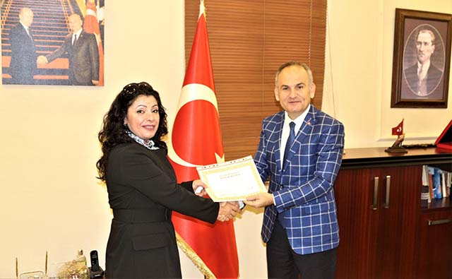 İskenderun Halk Eğitim Merkezi Müdürü Bekir Durur ve beraberindeki kursiyerler, İlçe Kaymakamı İskender Yönden’i ziyaret etti. Dün Kaymakamlık makamında gerçekleşen ziyaret esnasında, İskenderun Halk Eğitim Merkezi Müdürü Bekir Durur tarafından, Halk Eğitim Merkezi marifetiyle yürütülen teknik ve mesleki kurslar hakkında bilgi verilmesi akabinde, Gümüş İşlemesi ve El Sanatları Kursu’na iştirak eden kadın kursiyerlerce, kendi hünerleriyle işledikleri gümüş takılar ile ilgili bir bilgilendirme yapıldı.